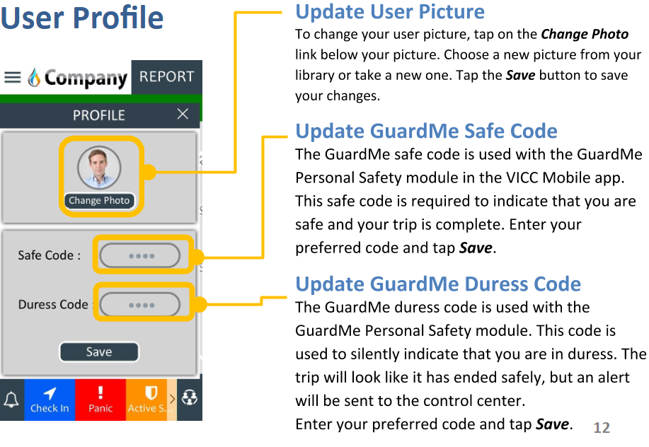 - Option to change Picture, or GuardMe Safe/Duress Codes
